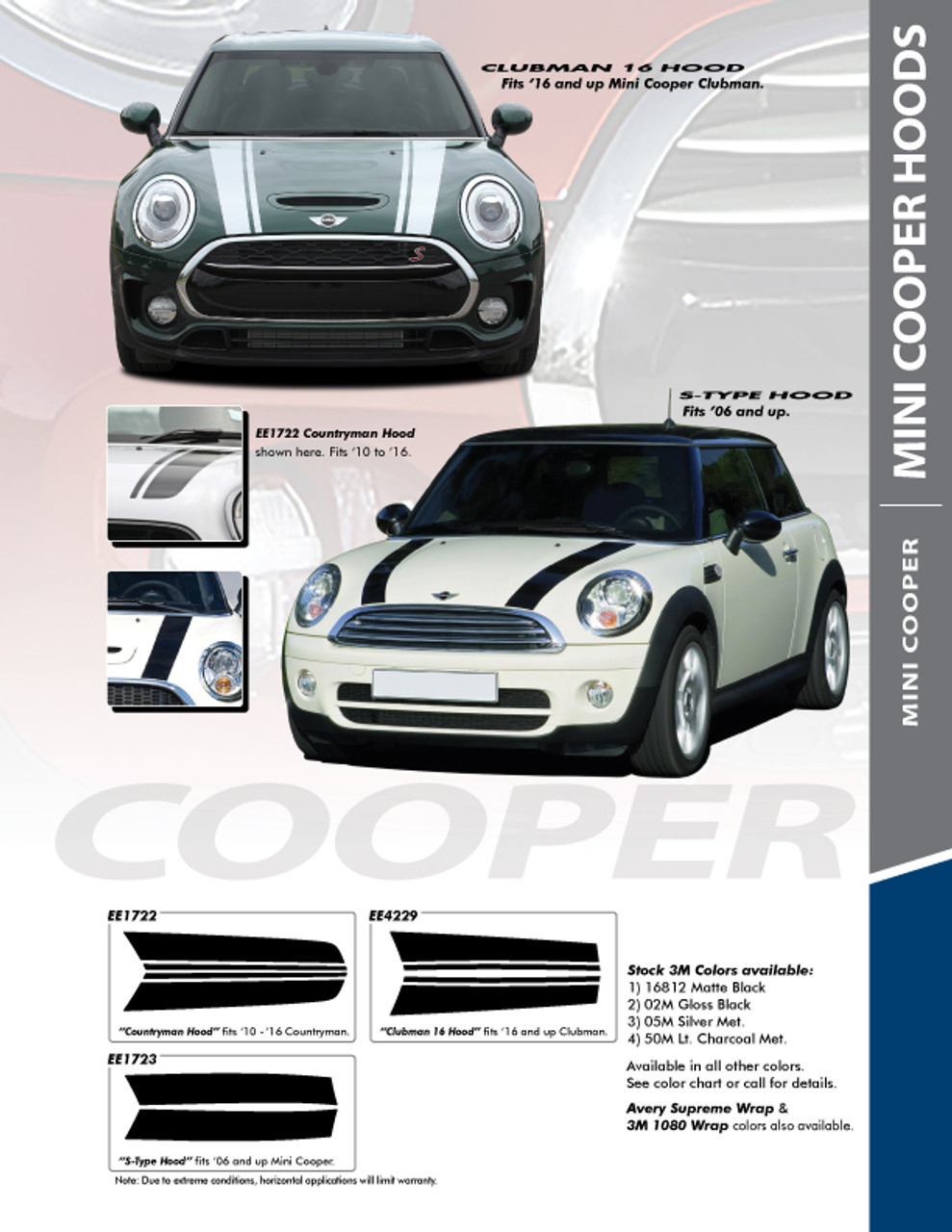 Mini Cooper Hood Stripes Vinyl Graphics Decals Clubman 2016 2018